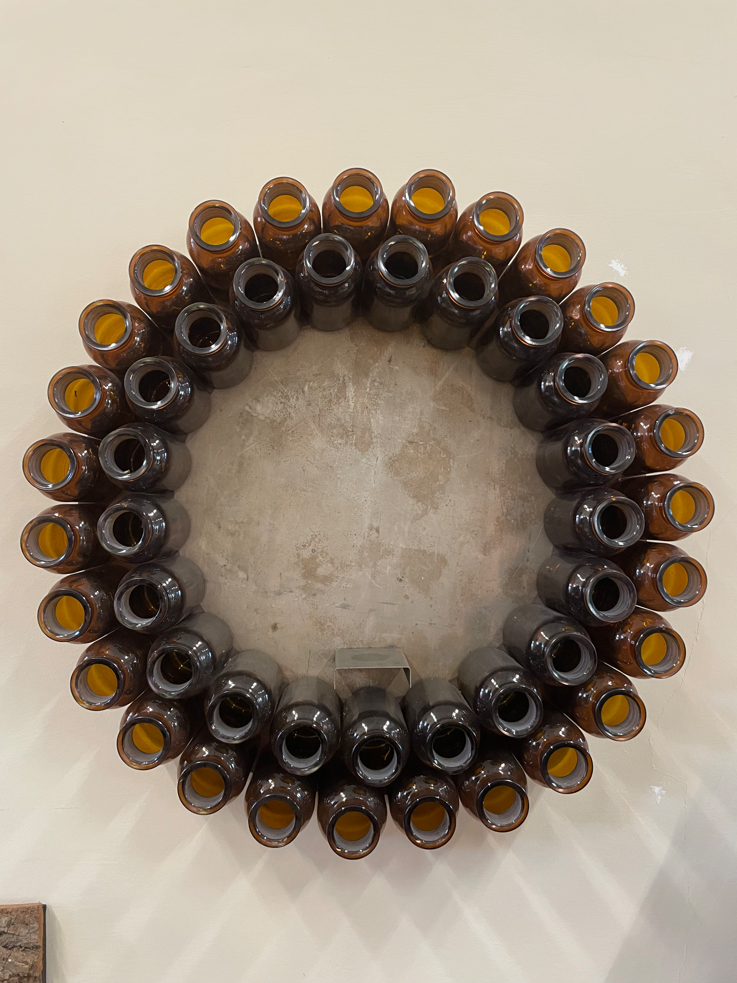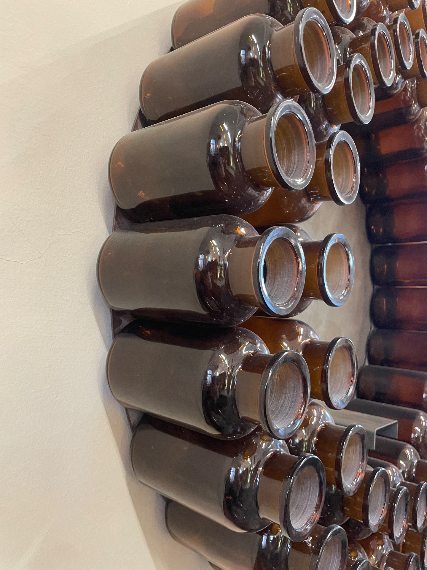 Kranz aus Original Apothekervasen mit Wandhängung und Regal für Produkt/Figur/Vase